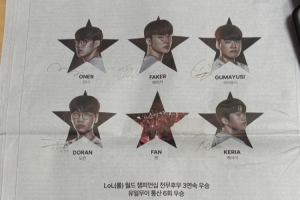 体育资讯11月11日讯 T1在S15夺冠后,选手们登上韩国报纸: