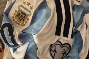 体育资讯11月11日讯 据足球装备网站footyheadline消息,阿迪达斯官网出售带有欧预赛臂章的阿根廷球衣。