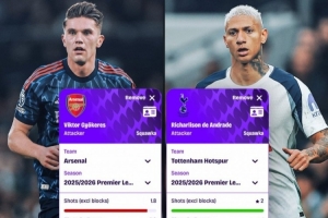 体育资讯11月21日讯 英超即将战火重燃,北伦敦德比备受瞩目。数据机构squakwa也对比了两队中锋约克雷斯和里沙利松本赛季英超场均关键数据情况,后者多项数据占优。