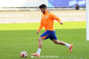 11月21日下午,山东泰山队在武汉体育中心体育场进行赛前踩场训练,备战明天与武汉三镇队的中超收官之战。