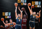 本赛季至今,约基奇场均可以得到29.1分13.2篮板和11.1助攻的大号三双。在这其中,得分超过奥拉朱旺的生涯最高赛季(27.8分),篮板超过邓肯的生涯最高赛季(12.9篮板),助攻超过基德的生涯最高赛季(10.8助攻)。
