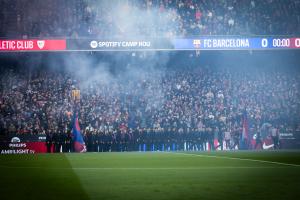 约翰·克鲁伊夫那句著名的箴言“尽情享受比赛”仿佛写在球员们脸上,加泰罗尼亚青年合唱团演绎那美妙绝伦的巴萨队歌更令全场沸腾。令人起鸡皮疙瘩的时刻——或者用这位传奇荷兰人常说的:激动得起鸡皮疙瘩。当烟花表演与队歌完美同步,照亮整个球场时,这种感觉愈发强烈,汇成一片团结的呐喊。