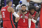 谈到球队进攻效率的提升,他说:“我觉得首先是进攻篮板,去年我们就靠篮板优势压制对手,今年更是如此,能获得更多进攻回合。然后是三分命中率,我们投的三分不算多,但每个人的命中率都很高。以前可不是这样,我时好时坏,杰伦・格林、狄龙也不稳定,虽然都是好射手,但从来没有过8个人命中率超过40%的情况。现在里德·谢泼德命中率大概47%,杜兰特就不用说了,伊森40%,阿尔佩伦·申京命中率也很高,霍勒迪肯定也在列,所有人都能投进三分。奥科吉最近也手感也热,所以三分能力给我们的进攻加了一层保障。”