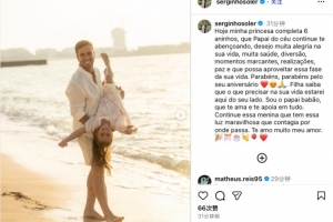 塞尔吉尼奥写道:“今天我的小公主满6岁了,愿在天堂的家人们继续保佑你,愿你平安喜乐,健康成长,生活五彩斑斓,享受生活带来的乐趣。爸爸会一直陪在你身边,永远爱你,支持你做想做的事情。我爱你,亲爱的。”