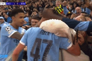 体育资讯11月06日讯 欧冠联赛阶段第4轮曼城vs多特第22分钟,福登进球后跑到角旗区庆祝,有球迷搂着他自拍了一张,福登还看镜头笑的特别配合。
