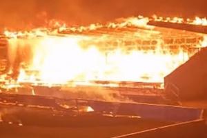 惨芬超降级队主场看台被大火完全烧毁,警方怀疑是人为纵火