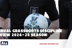 英足总发布24-25草根足球纪律报告:严重案件每千场增加0.08起