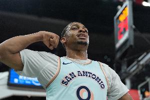 在上半场的比赛中,马刺球员凯尔登·约翰逊手感火热,他替补出战了14分钟,3投3中,罚球4中4,得到10分1篮板1抢断,没有失误。