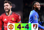 英超曼联4比4伯恩茅斯,B费任意球破门双方激战