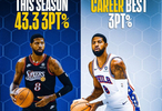 本赛季,乔治三分命中率43.3%,场均出手6次三分,可以命中2.6记。乔治生涯三分命中率38.4%。