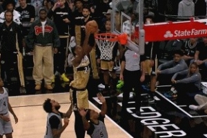 上一篇: 身高相差悬殊!亚历山大篮下护筐!正面血帽祖巴茨扣篮