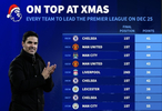 英超最近33支圣诞节登顶的球队有17支夺冠,近7年仅3队夺冠