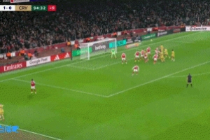 体育资讯12月24日讯 联赛杯1/4决赛阿森纳vs水晶宫第95分钟,格伊抢点破门,阿森纳被1-1扳平!