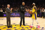 “这开始变成一件很现实的事情。因为我感觉我的身体并没有在崩溃,那时候这就成为了热议话题,比如,‘如果接下来的4-5年里他保持每年场均27分或者25分,同时出战65场,那么他就能登顶,他有机会打破纪录。’在几年前,计算被精确到了,‘如果他保持这个得分节奏,那就还剩45场、35场。’那开始让我变得神经紧张,同时我也在想,‘哦,天啊!这真的是很有可能的事情吗?’在体育历史上,存在一些你从未想过能被打破的数据。那项历史得分数据就是其中之一。而我能够实现那项壮举的同时也没有刻意追求这项成就,那让我对此的感觉更加不真实。我是历史得分榜的头名,但我也是历史助攻榜的第四名。所以我觉得这很酷,能够在家人朋友以及所有人的见证下经历那一刻,贾巴尔举起篮球交给我,把球传递给我,那是一个不可思议的超现实时刻。”