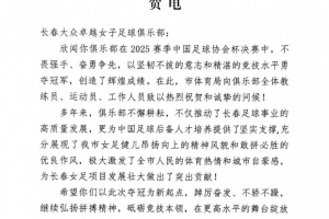 体育资讯12月24日讯 长春大众卓越女足获得2025年女子足协杯冠军,长春市体育局、长春市足球协会送上祝贺。